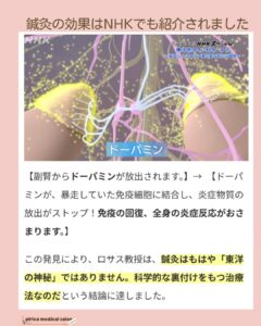 ・副腎からドーパミンを放出させることで免疫が回復し、全身の炎症反応がおさまる
