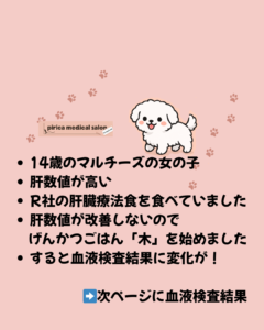 肝数値が高く、他社の肝臓療法食を続けていましたが改善せず…